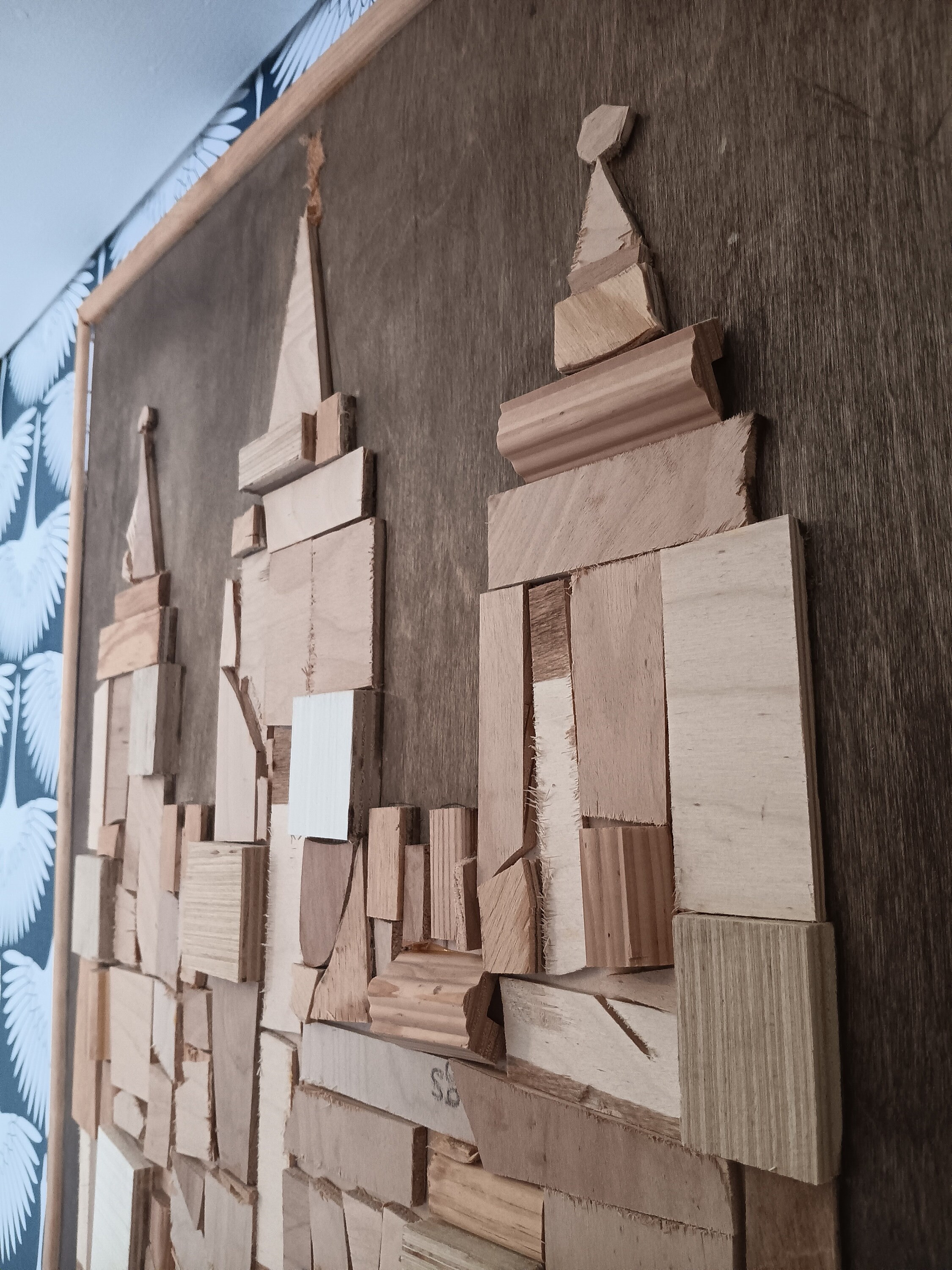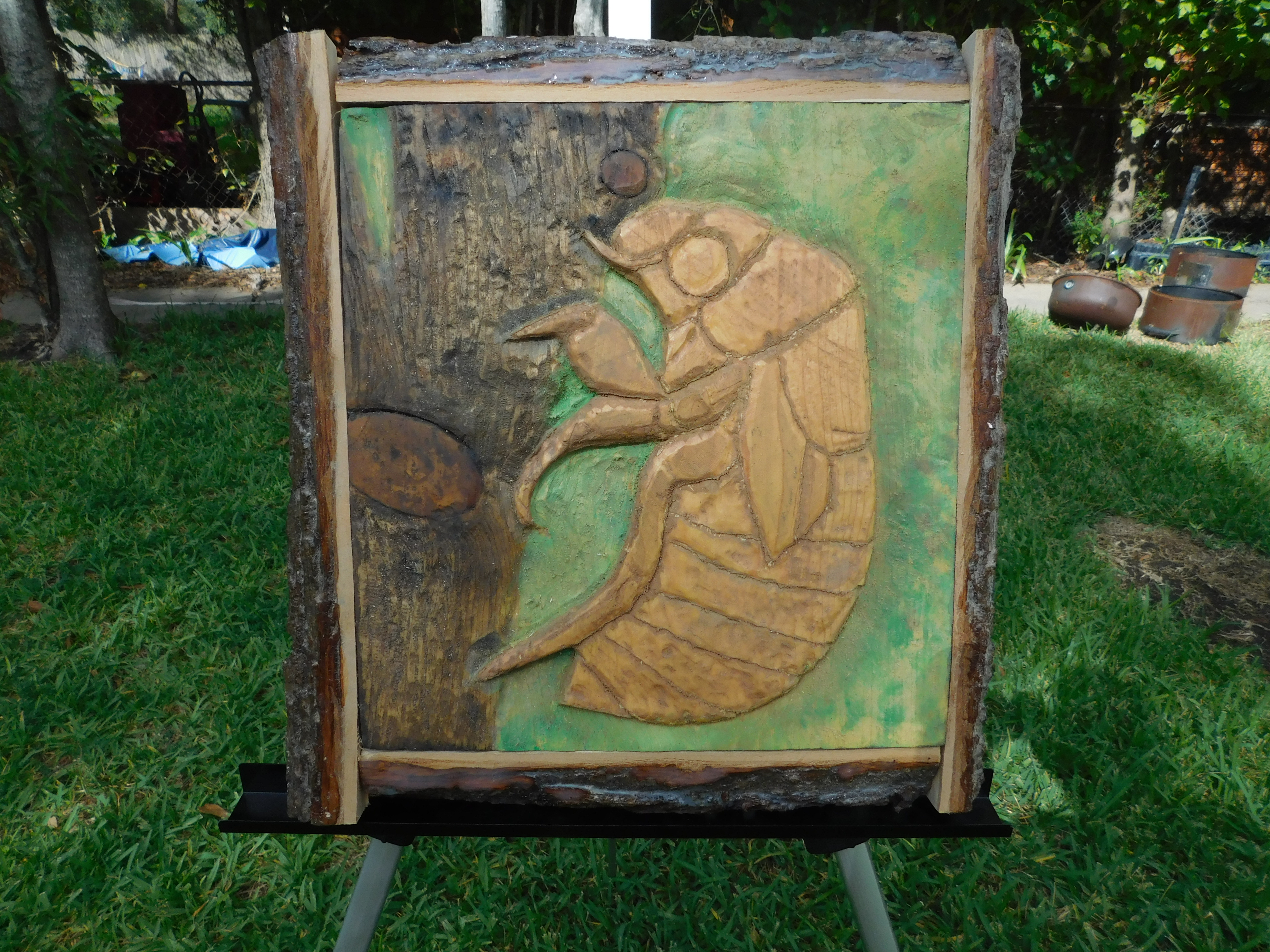 17x48x1.5 inches – reclaimed wood and carving – $250