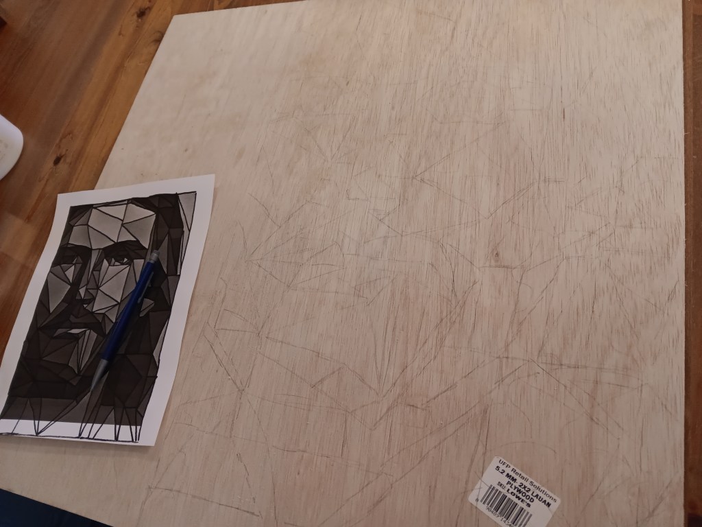 At this point I usually sit with the drawing next to me and trace over the lines again. This ensures I didn’t miss any with the projector, but also allows me to darken the lines so they are easier to see when cutting.