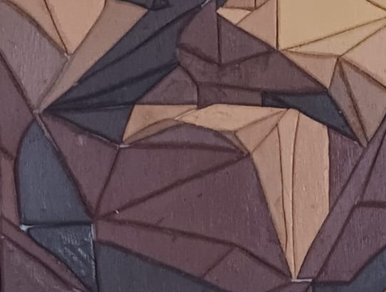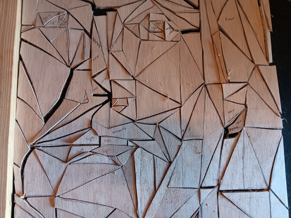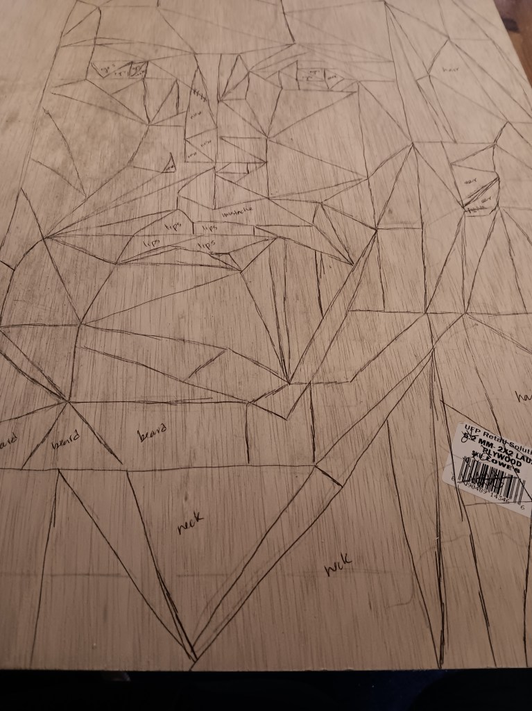 Then comes the real scroll work, where I begin to cut each individual triangle. Straight lines are actually incredibly difficult, so this took quite some time.