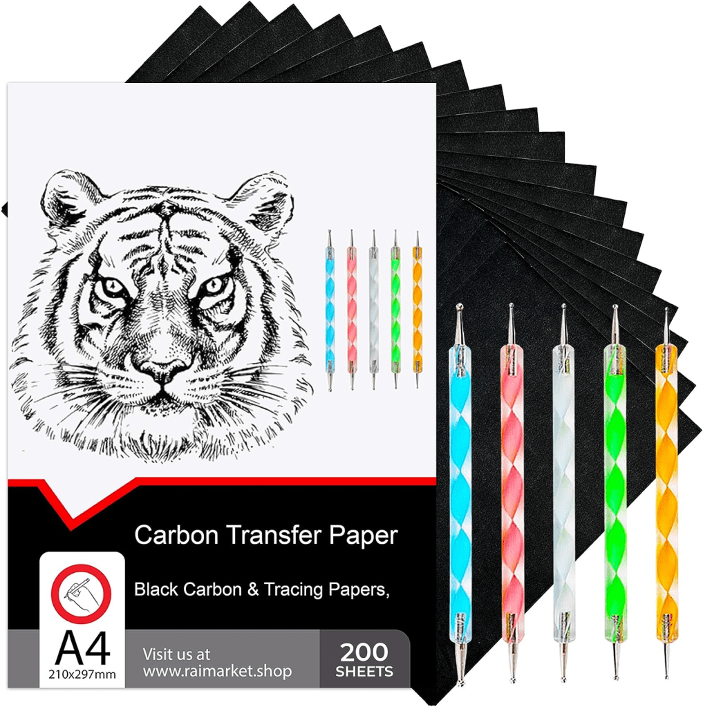 Drawing freehand is always an option, and there are other methods of transfer, but this is the industry standard. You place a whatever image you want to trace onto a a piece of carbon paper, and place both on the wood. Then you trace it will the provided tools. It truly is magic. The good thing about this method of transfer is the carbon left behind is easily burned off in the pyrography process, and doesn’t release any harmful chemicals.